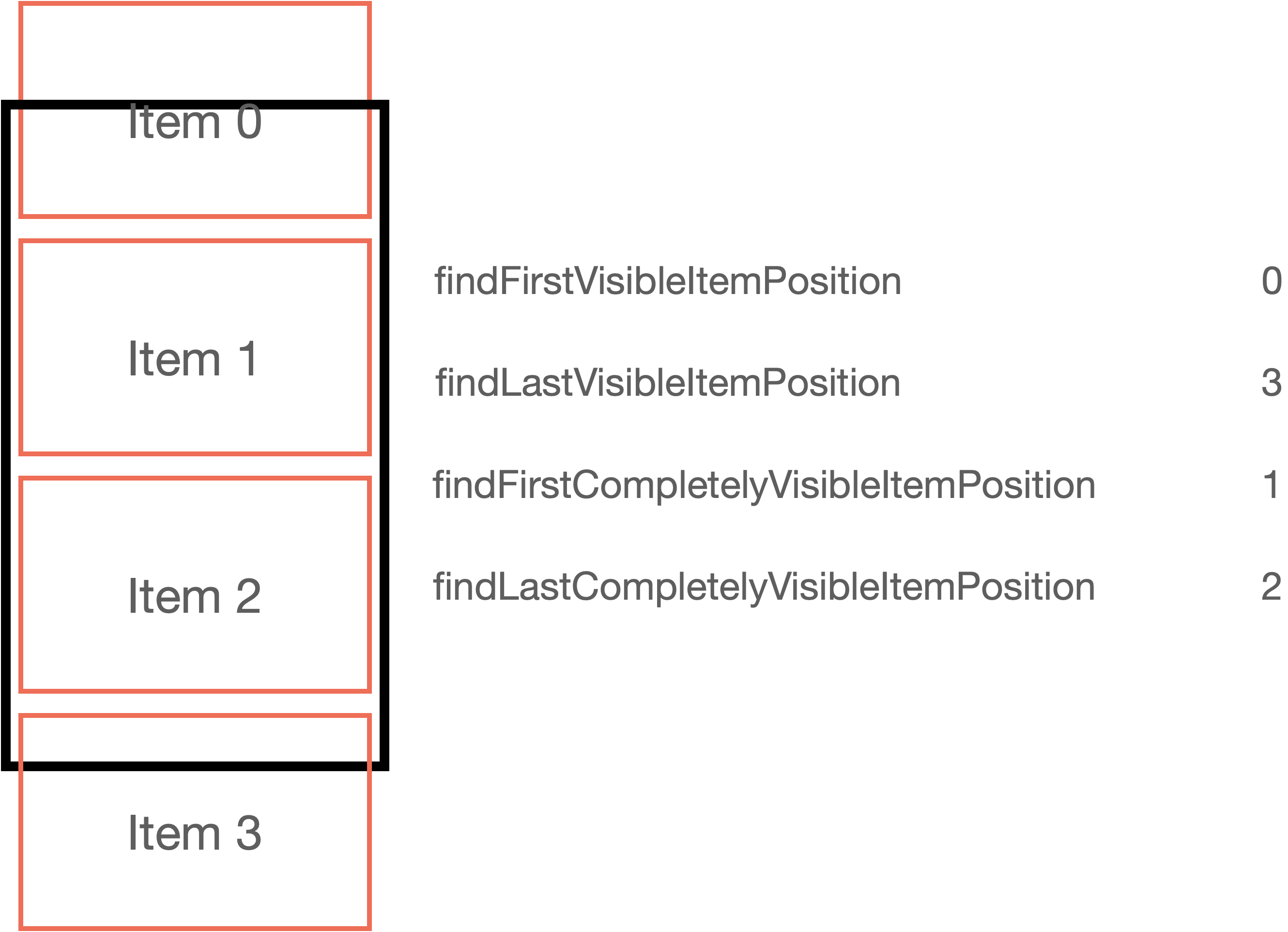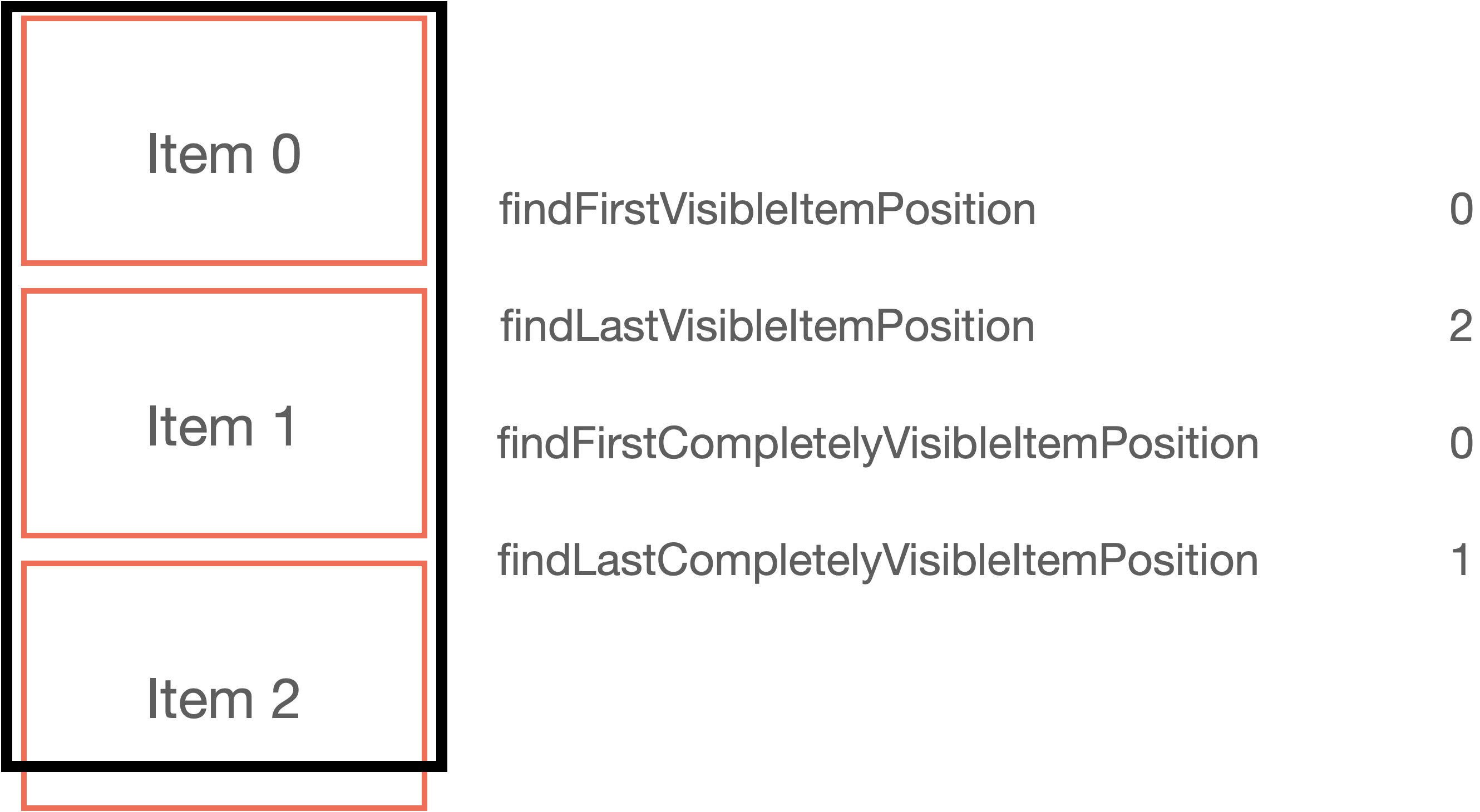 findFirstCompletelyVisibleItemPosition : 아이템의 최상단이 완전히 보이는 가장 상위의 아이템
