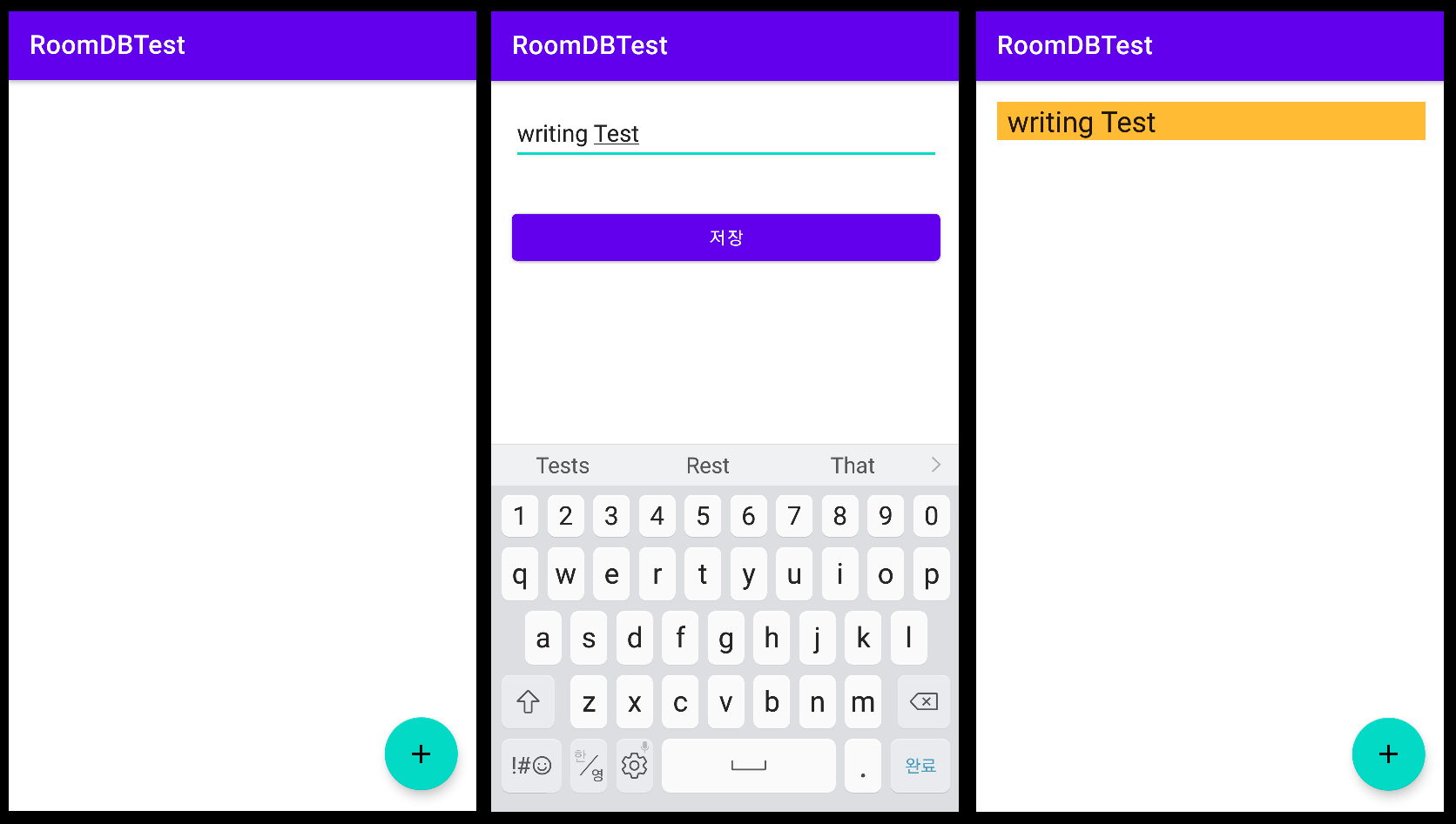 오른쪽 아래의 버튼을 누르면 데이터를 입력할 수 있는 액티비티가 보이고
