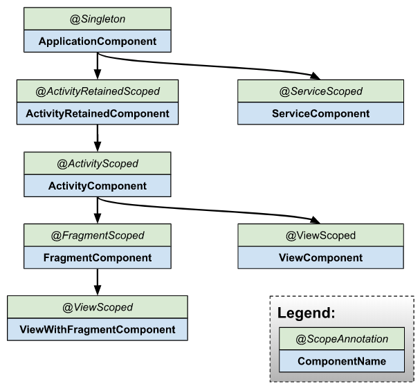 | ViewWithFragmentComponent | Application, Activity, Fragment, View |