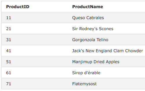 SELECT ProductID, ProductName